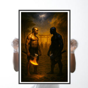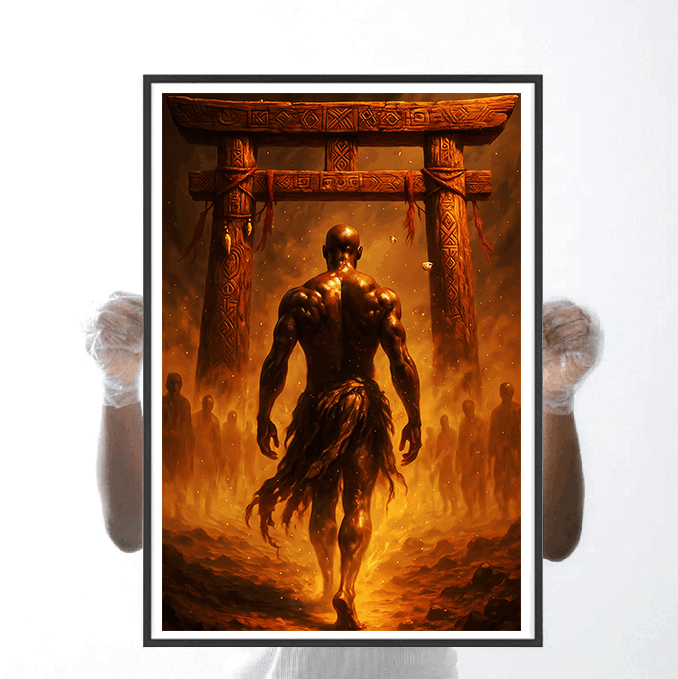 A Warrior’s Odyssey: Fire, Blood & Spirit is a 12‑piece mythic exhibition that follows the journey of a lone warrior through trials of fire, shadow, beast, and spirit. Each Path reveals not only his struggle but the covenant between mortal flesh and divine ancestry. Presented in cinematic mythic realism, the series combines narrative, visual, and voice to immerse the viewer in a timeless odyssey.